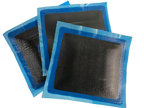 • В пластыре используется специальный соединительный слой голубого цвета, прочно связанный с резиной, что дает отличный результат в процессе вулканизации.