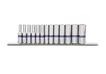 Основная разновидность рабочих насадок сборного слесарно-монтажного инструмента - это торцевая головка. Торцевые головки разделяются по геометрии рабочего профиля, по длине и по назначению. Такие инструменты обеспечивают наилучшие условия для приложения рабочего усилия по сравнению с другими видами инструмента для работы с внешними рабочими профилями. Двенадцатигранные головки удобнее в применении по сравнению с 6-гранным, так как какой профиль предоставляет большую свободу для позиционирования головки на крепеже. Однако, он обладает меньшим по площади пятном контакта и воздействие на крепеж, особенно с высокой нагрузкой, может повредить грани крепежной детали, что в сочетании с большим количеством концентраторов напряжения несколько ограничивает применяемые максимально допустимые нагрузки, опять же, по сравнению с 6-гранными головками. Торцевая головка выполнена из хром-ванадиевой стали, имеет накатку и полуматовое хром-никелевое покрытие. Изделие изготовлено по стандарту DIN 3124, полностью соответствует требованиям.