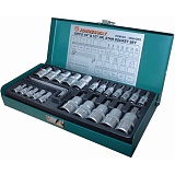 Основная разновидность рабочих насадок сборного слесарно-монтажного инструмента - это торцевая головка. Торцевые головки разделяются по геометрии рабочего профиля, по длине и по назначению. Такие инструменты обеспечивают наилучшие условия для приложения рабочего усилия по сравнению с другими видами инструмента для работы с внешними рабочими профилями. Двенадцатигранные головки удобнее в применении по сравнению с 6-гранным, так как какой профиль предоставляет большую свободу для позиционирования головки на крепеже. Однако, он обладает меньшим по площади пятном контакта и воздействие на крепеж, особенно с высокой нагрузкой, может повредить грани крепежной детали, что в сочетании с большим количеством концентраторов напряжения несколько ограничивает применяемые максимально допустимые нагрузки, опять же, по сравнению с 6-гранными головками. Торцевая головка выполнена из хромованадиевой стали, имеет накатку и полуматовое хромоникелевое покрытие. Изделие изготовлено по стандарту DIN 3124, полностью соответствует требованиям ГОСТа 25604-83.